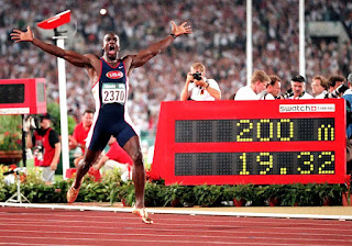 - American sprinter Michael Johnson arrived to the stage and won gold in the 200m and 400m dash (with a world record in the 200m dash)